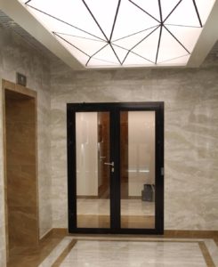 Допускаются горизонтальные и вертикальные типы рам и стеклопакетов (одна или две створки одновременно). В редких случаях противопожарные двери с фрамугами могут быть оборудованы механизмами открывания для внутренней вентиляции.